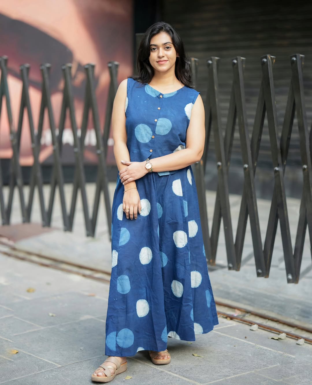 Indigo colour is rich and elegant. Flared skirt looks amazing when worn.